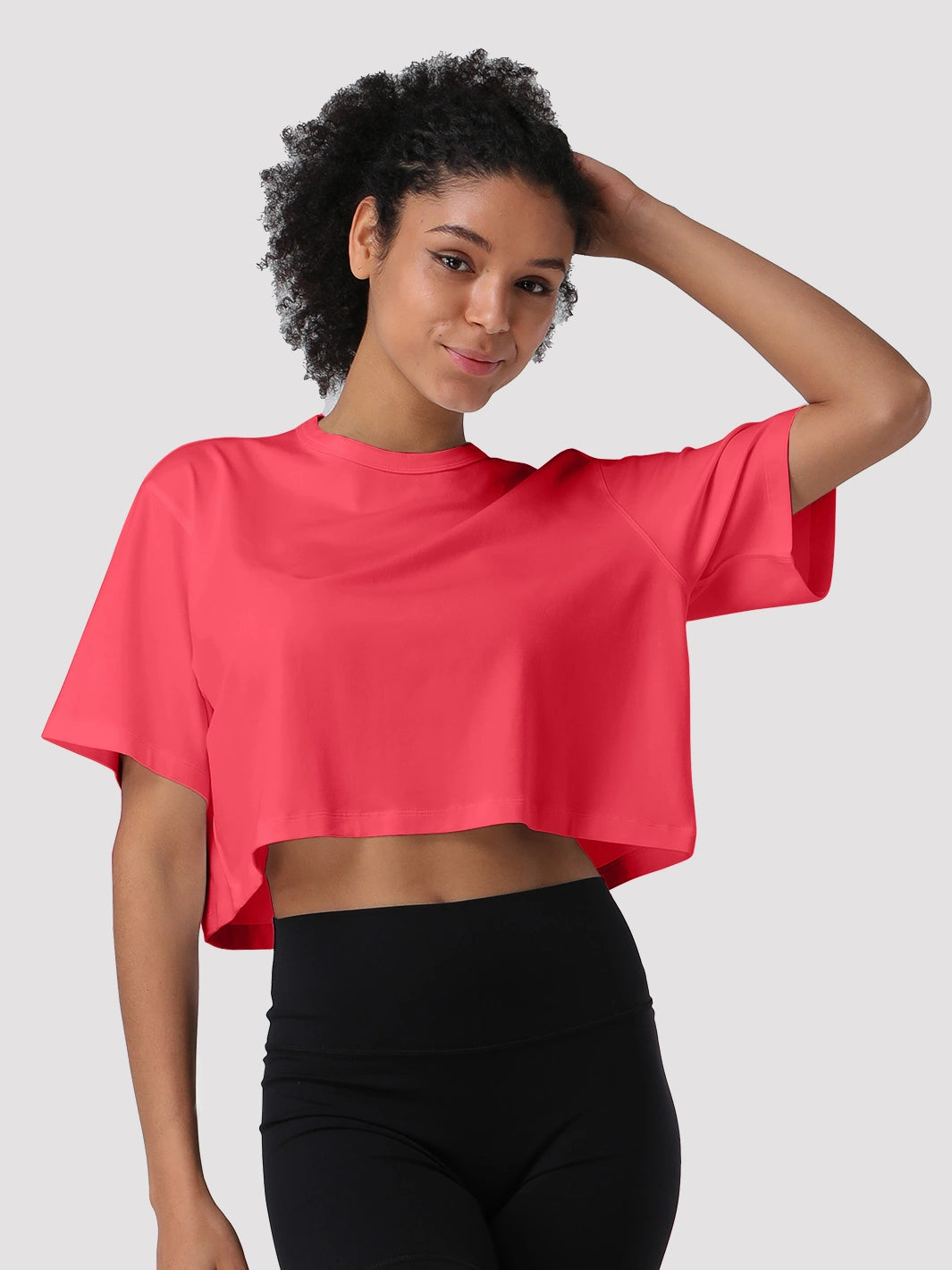 Veredle deinen Athleisure-Stil mit diesem superweichen, oversized Crop Top. Hergestellt aus hochwertigem 4-Wege-Stretchmaterial, ist es leicht, atmungsaktiv und unglaublich hautfreundlich für ganztägigen Komfort. Die entspannte, übergroße Passform ermöglicht volle Bewegungsfreiheit ohne Einschränkung, was es perfekt für Workouts, Yoga oder einfach zum Entspannen macht.