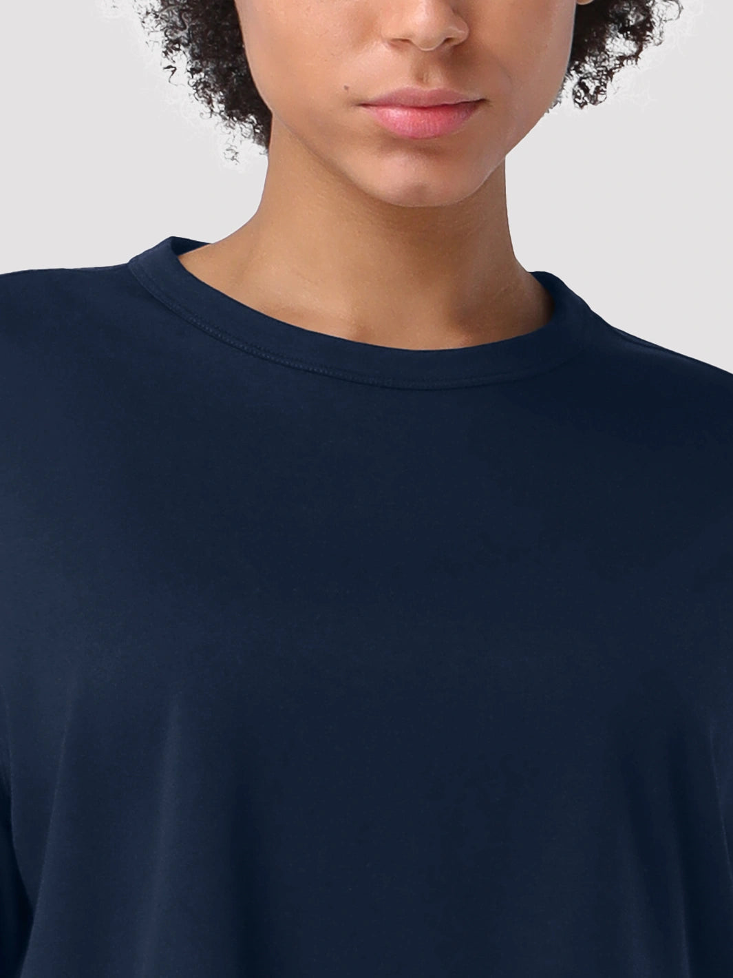• Klassischer Rundhalsausschnitt und überschnittene Schultern