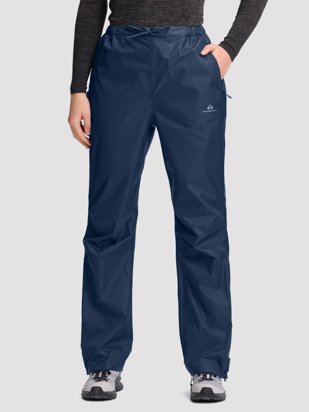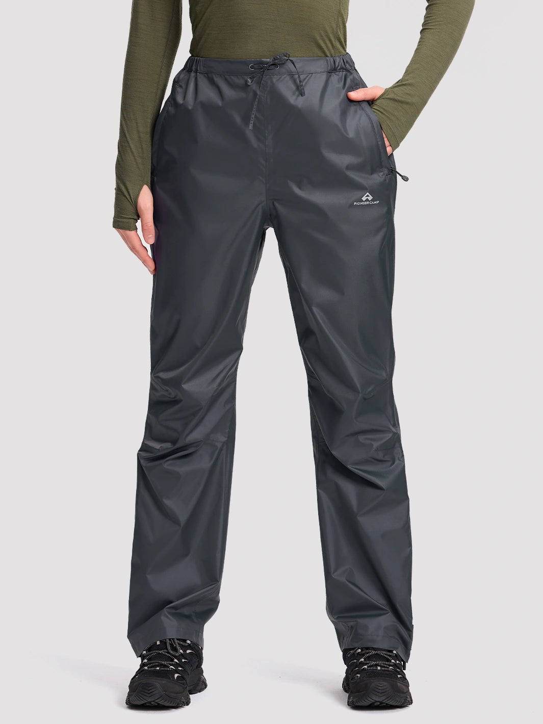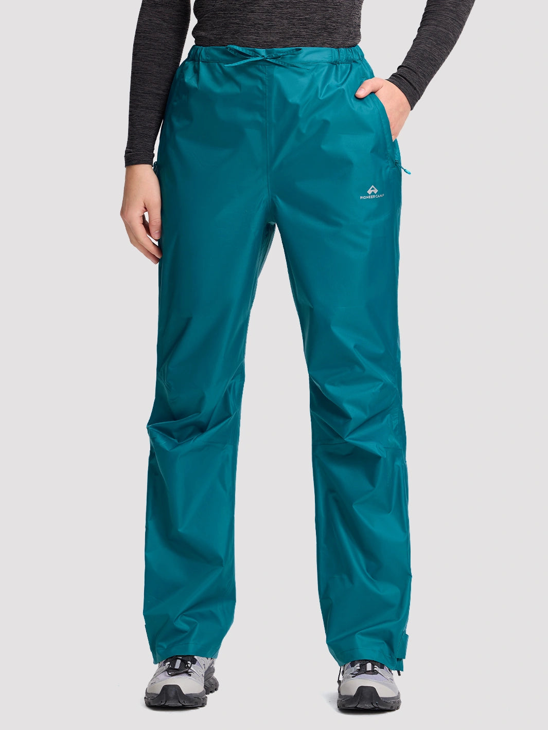 Prepárate para aguaceros repentinos con estos pantalones de lluvia para mujer altamente funcionales. Ofrecen una protección impermeable fiable con una membrana de TPU totalmente sellada de 20 000 mm, combinada con una transpirabilidad de 4500 g/m²/24 h para mantenerte seca tanto de la lluvia externa como de la condensación interna. Su diseño ligero permite guardarlos de forma compacta en un bolsillo integrado, perfecto para llevar en tu mochila durante excursiones, campamentos o viajes urbanos.