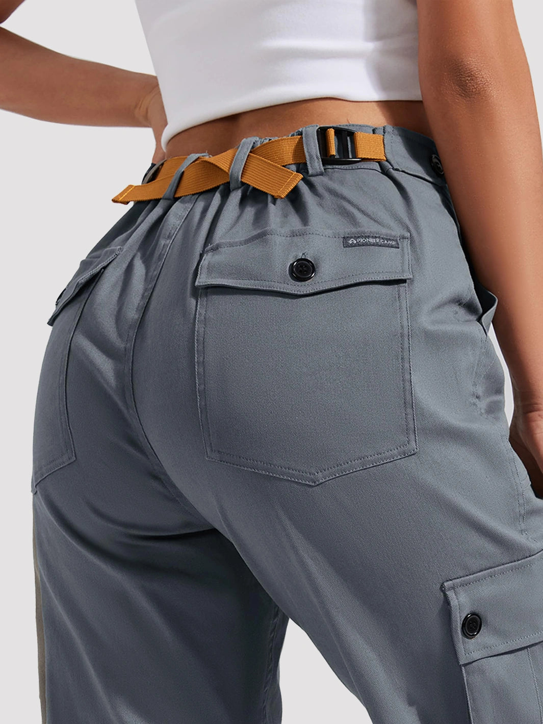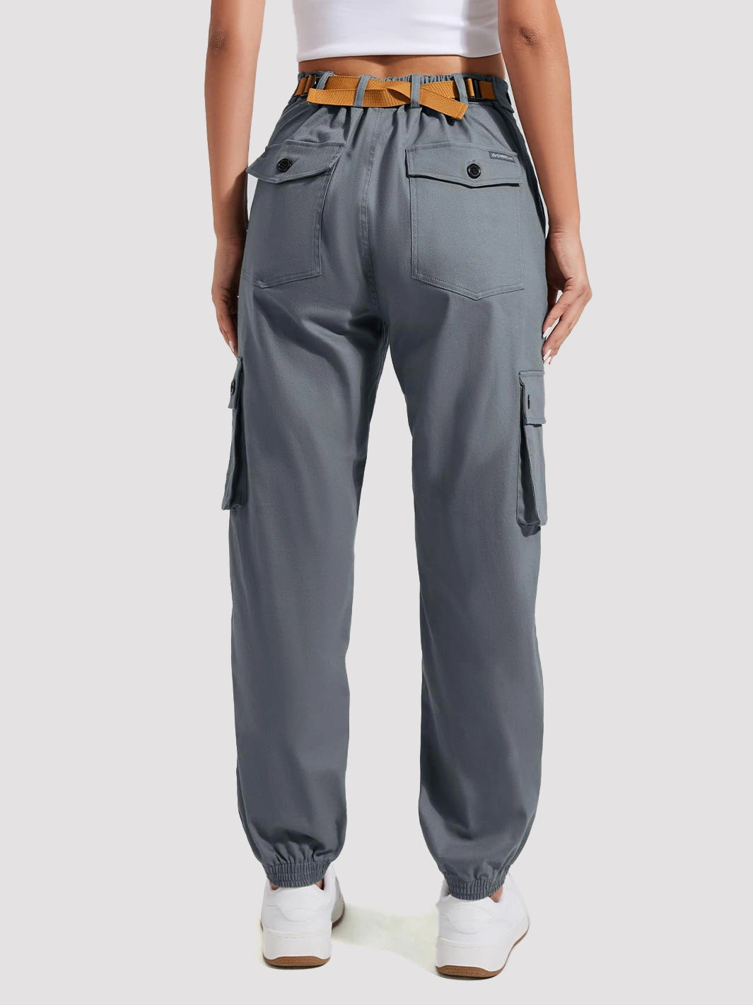 Stay comfortable and organized on the move with these durable yet flexible cargo pants, designed for both outdoor adventures and everyday wear. The fabric offers the perfect balance of stretch and durability¡ªtested to withstand over 30,000 frictions without pilling¡ªensuring lasting comfort through long days of work, hiking, or travel. The slim tapered cut flatters your figure while providing ample room for movement, and the elastic cuffed hem keeps the pants securely in place without riding up. An adjustable high-rise waistband with rear belt loops allows you to customize the fit for all-day comfort. Six multi-function pockets¡ªincluding two large front buttoned pockets and two secure buttoned back pockets¡ªprovide plenty of space to store keys, phone, snacks, and other essentials. Perfect for hiking, climbing, camping, trekking, or casual daily wear.