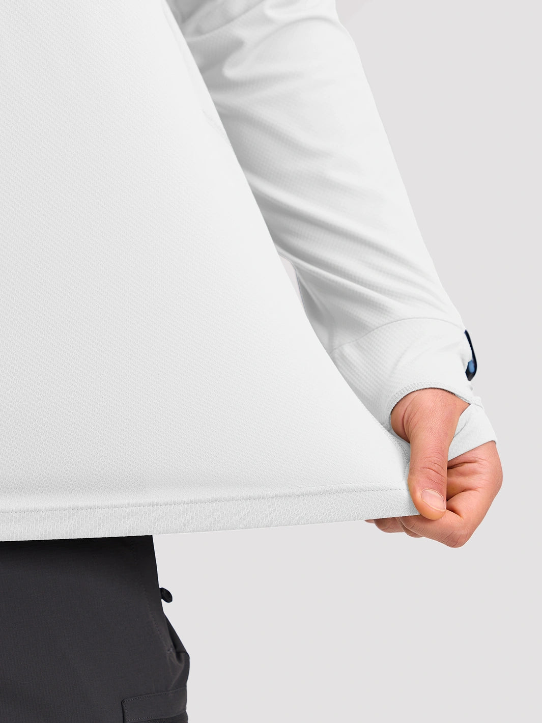 Defend against intense sun during long outdoor exposures with this high-performance men's sun hoodie. Engineered with UPF 50+ fabric in a breathable honeycomb texture, it effectively blocks over 98% of harmful UV rays while promoting superior airflow to prevent overheating. The lightweight, moisture-wicking material ensures rapid drying and lasting comfort during trail running, climbing, or hiking in hot conditions.